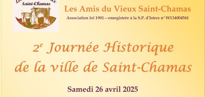 Les Amis du Vieux Saint-Chamas ont le plaisir de vous convier à la 2e Journée Historique de la ville de Saint-Chamas samedi 26 avril 2025 Salle Municipale, avenue des 53, 13250 Saint-Chamas Vous trouverez...