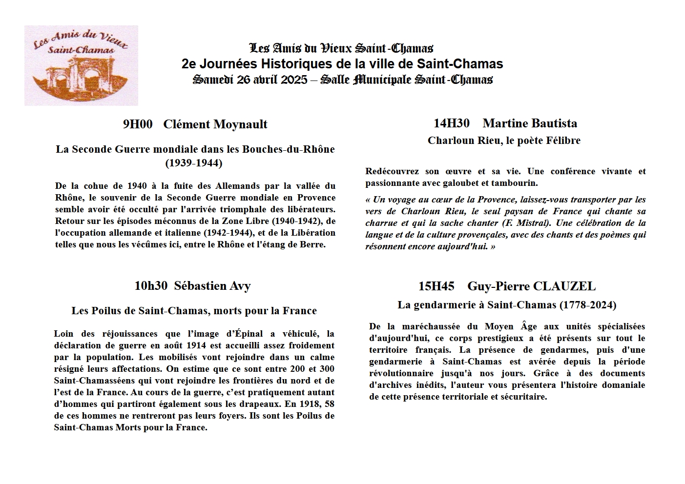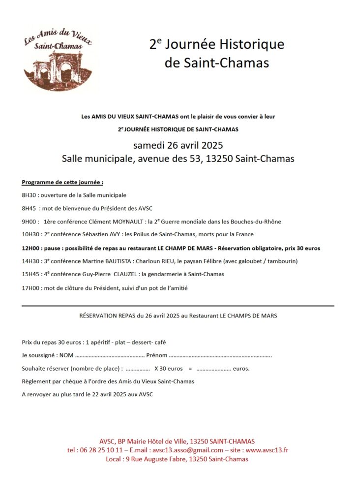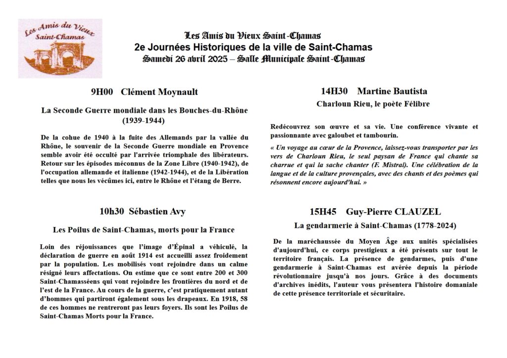 Les Amis du Vieux Saint-Chamas ont le plaisir de vous convier à la