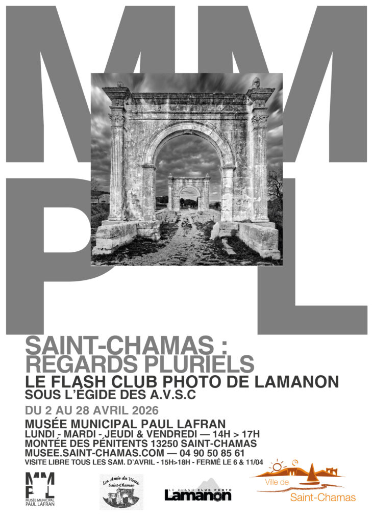 Exposition du 2 au 28 avril 2026, sous l’égide de l’association des Amis du Vieux Saint-Chamas, visite libre au musée municipal Paul Lafran, tous les lundis, mardis, jeudis et vendredis de 14h00 à 17h00 ; ainsi que tous les samedis de 15h00 à 18h00.