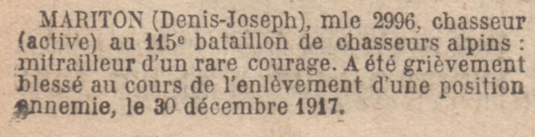 Brigadier au 115e régiment d’artillerie lourde, 14e batterie, matricule n°1358 au recrutement de Toulon, classe 1909.